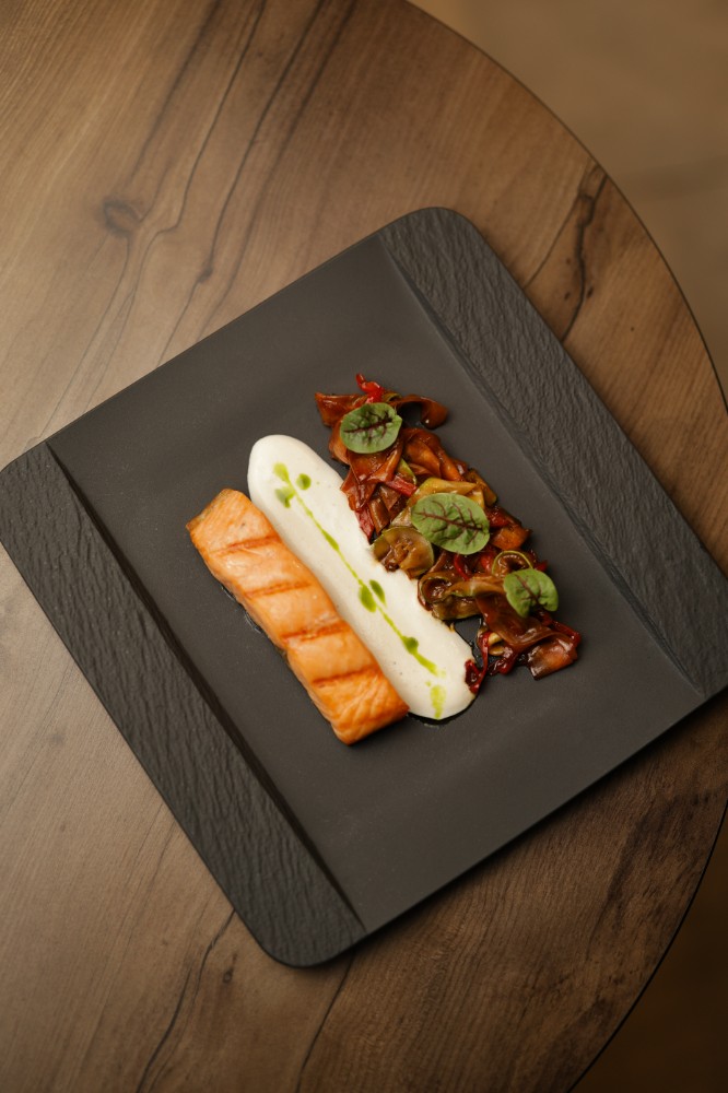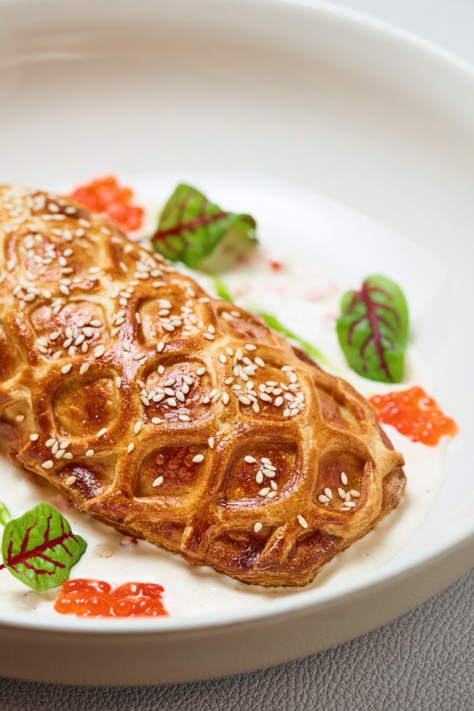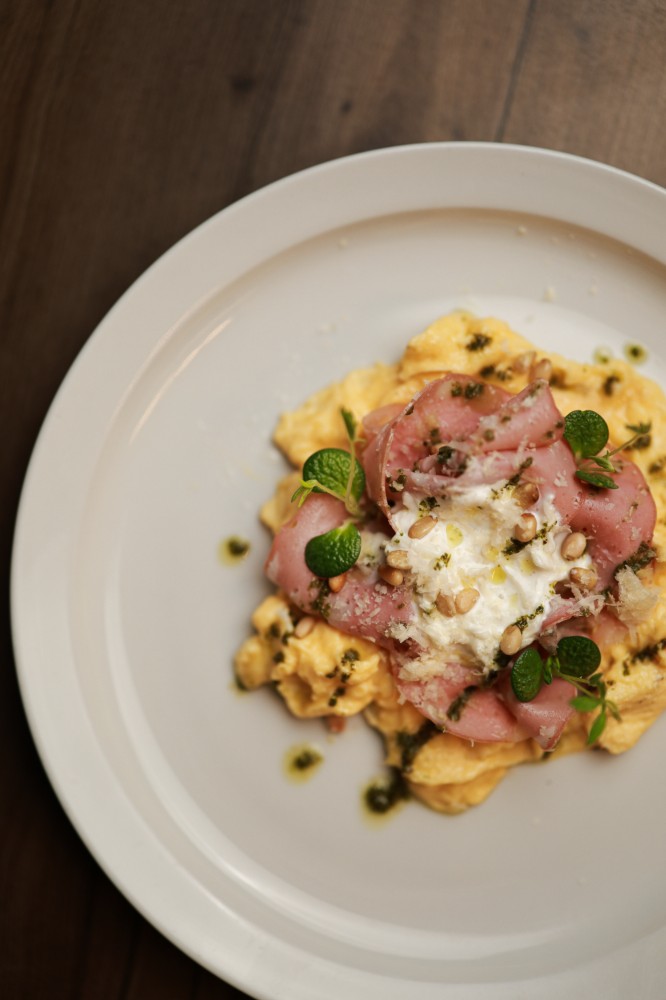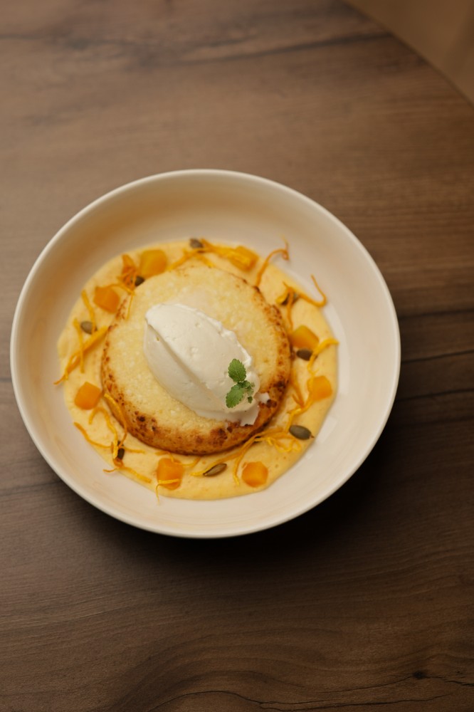 Гарбузово-кукурудзяні оладки з печеним перцем та беконом